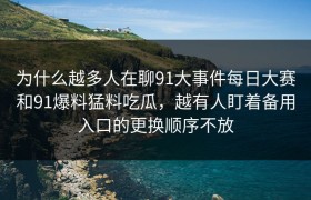 为什么越多人在聊91大事件每日大赛和91爆料猛料吃瓜,越有人盯着备用入口的更换顺序不放