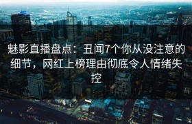 魅影直播盘点:丑闻7个你从没注意的细节,网红上榜理由彻底令人情绪失控 在光鲜亮丽的直播世界背后,总隐...