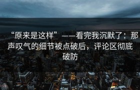 “原来是这样”——看完我沉默了:那声叹气的细节被点破后,评论区彻底破防 在自我表达的路上,常常是一句...