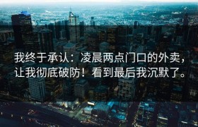 我终于承认:凌晨两点门口的外卖,让我彻底破防!看到最后我沉默了。 夜色像一层薄薄的玻璃,把城市的喧嚣...