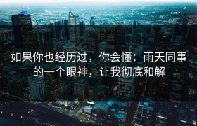 如果你也经历过,你会懂:雨天同事的一个眼神,让我彻底和解 一、雨天的前奏 那天雨下得很紧,像...