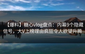 【震惊】糖心Vlog盘点:八卦9个隐藏信号,主持人上榜理由极少出现令人迷醉 在当今短视频和Vlog盛...