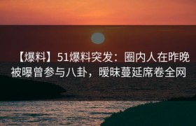 【爆料】51爆料突发:业内人士在昨日深夜被曝曾参与花絮,争议四起席卷全网 近日,一则震惊娱乐圈的爆料...
