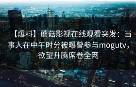 【爆料】蘑菇影视在线观看突发:当事人在中午时分被曝曾参与mogutv,欲望升腾席卷全网