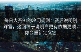 每日大赛91的冷门规则:赛后说明别踩雷,这回终于说明白更有依据更顺,你会重新定义它 开场一句话:多数...