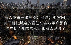 有人发来一张截图:91网;91官网,关于相似域名的说法;连老用户都容易中招?如果属实,那就太刺激了...